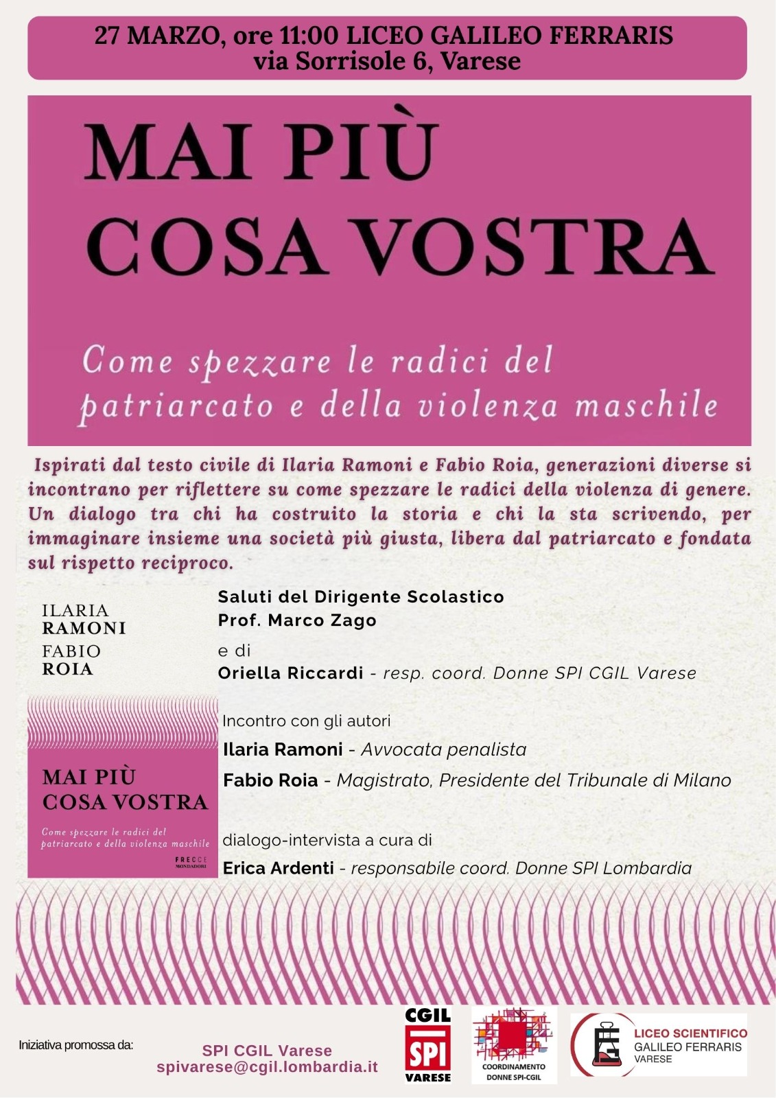 MAI PIU’ COSA VOSTRA. Come spezzare le radici del patriarcato e della violenza maschile. 27/3 Liceo Ferraris