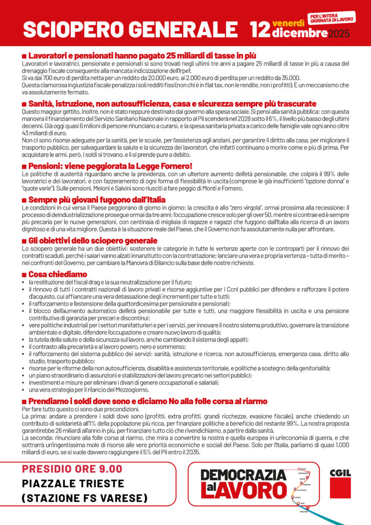 12 DICEMBRE 2025 – SCIOPERO GENERALE