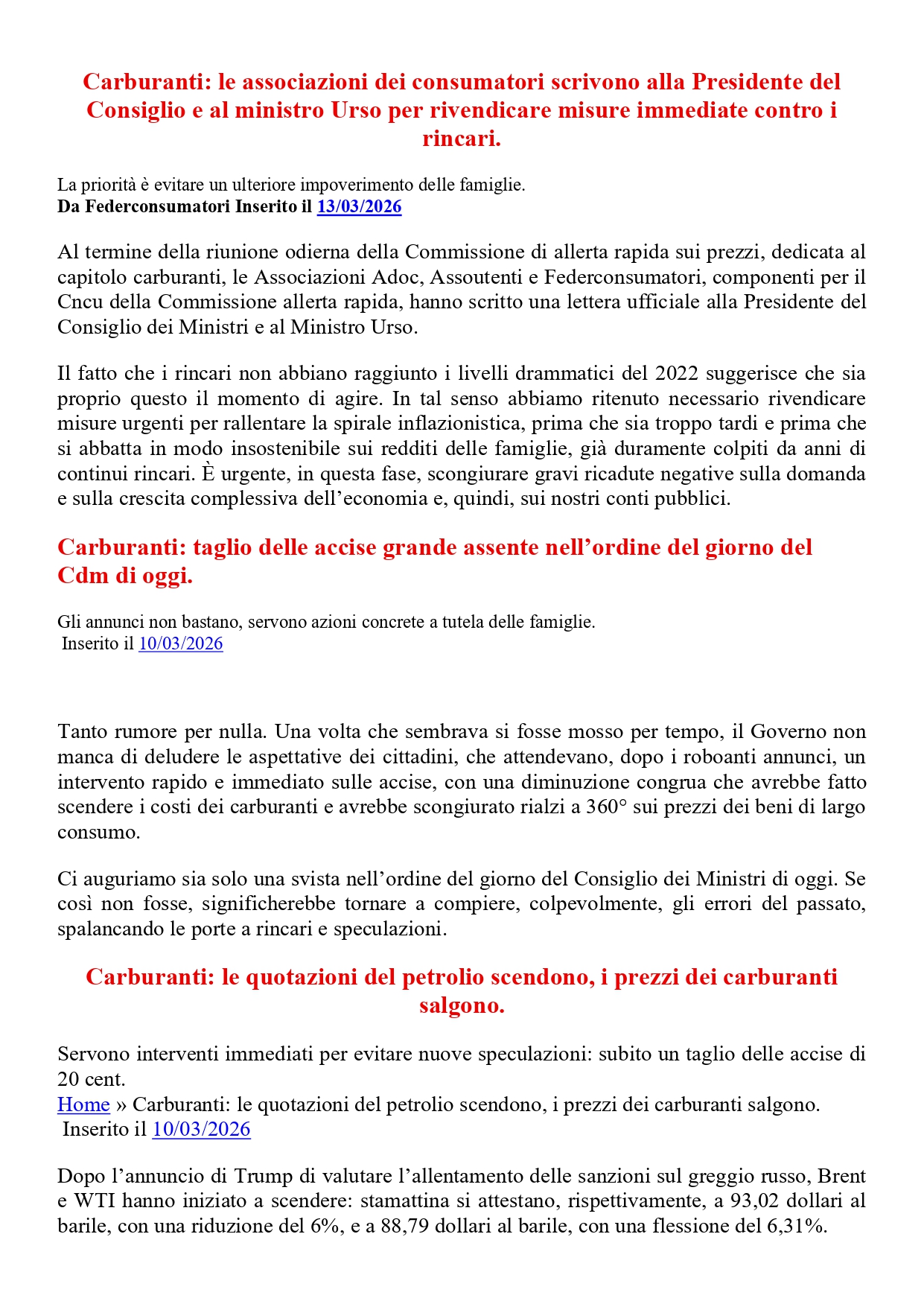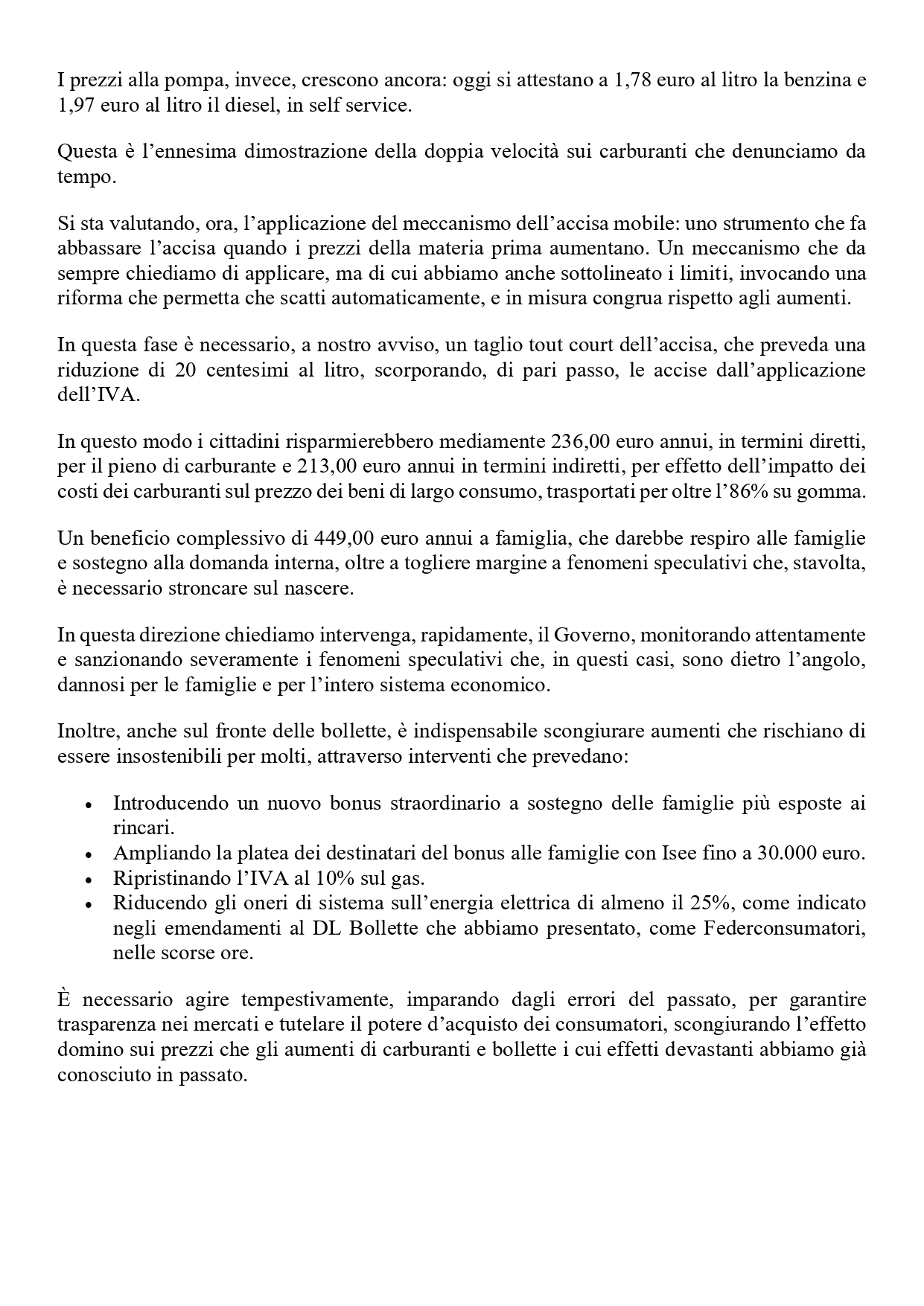 Carburanti: servono misure immediate contro i rincari