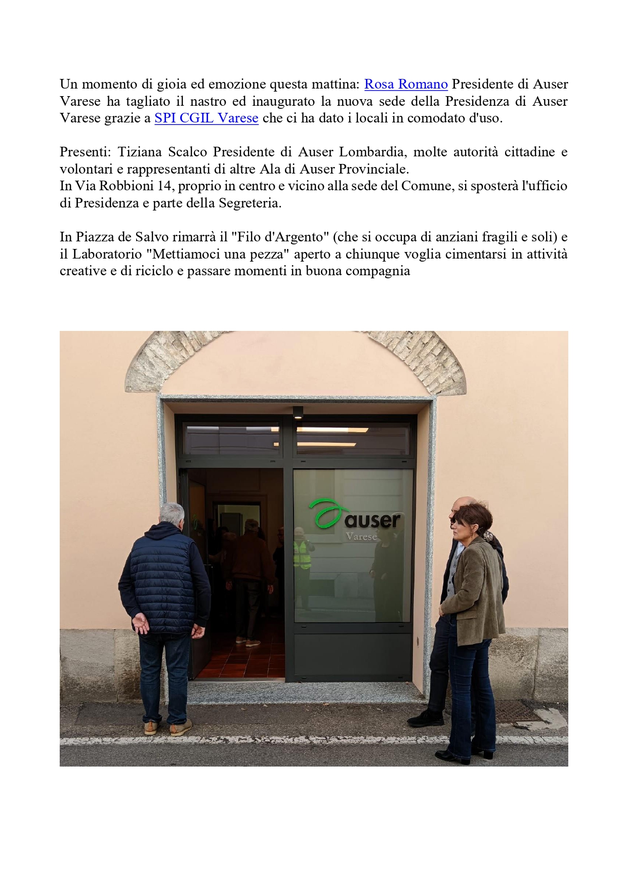 Inaugurata la nuova sede di Auser Varese in Via Robbioni 14