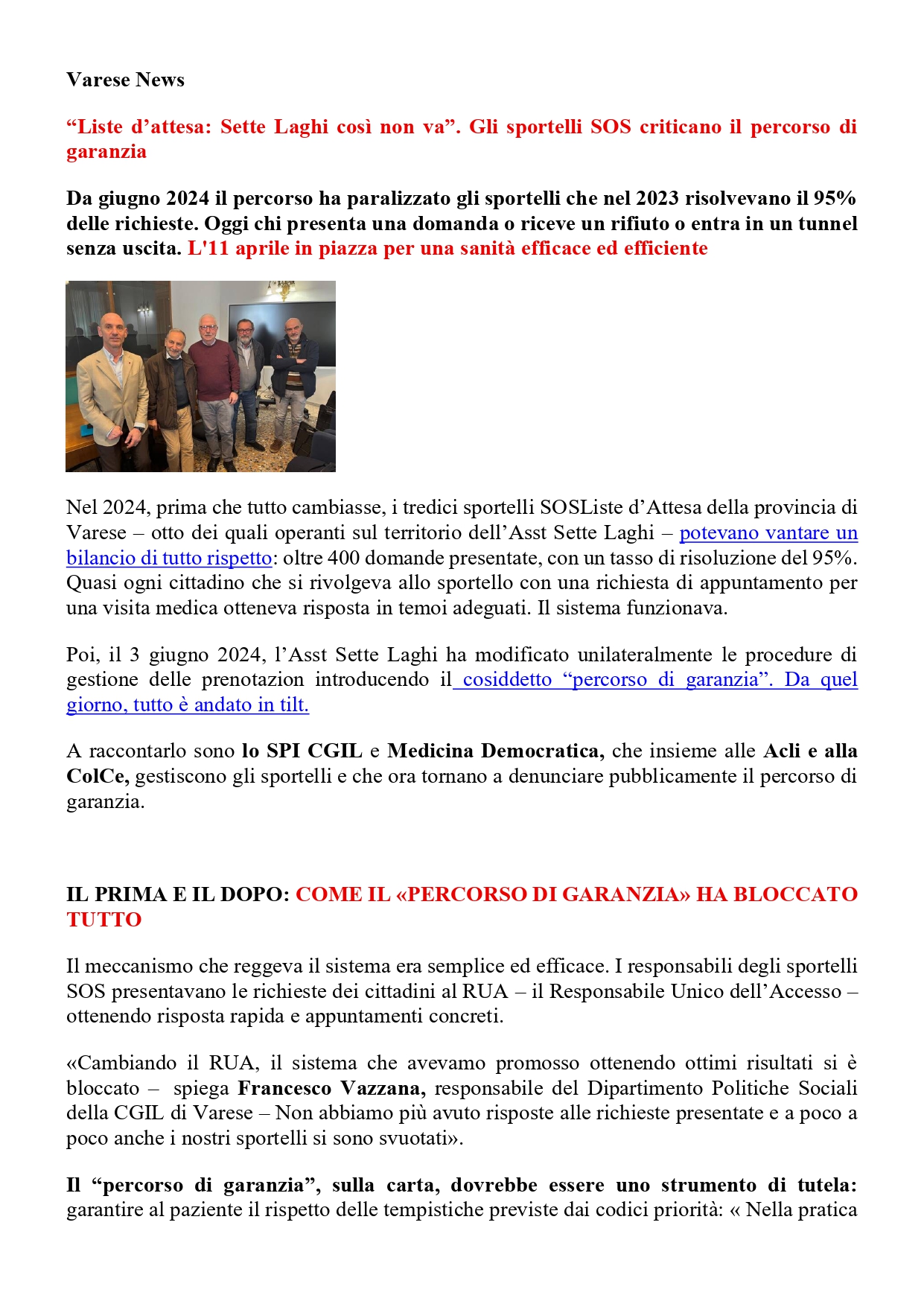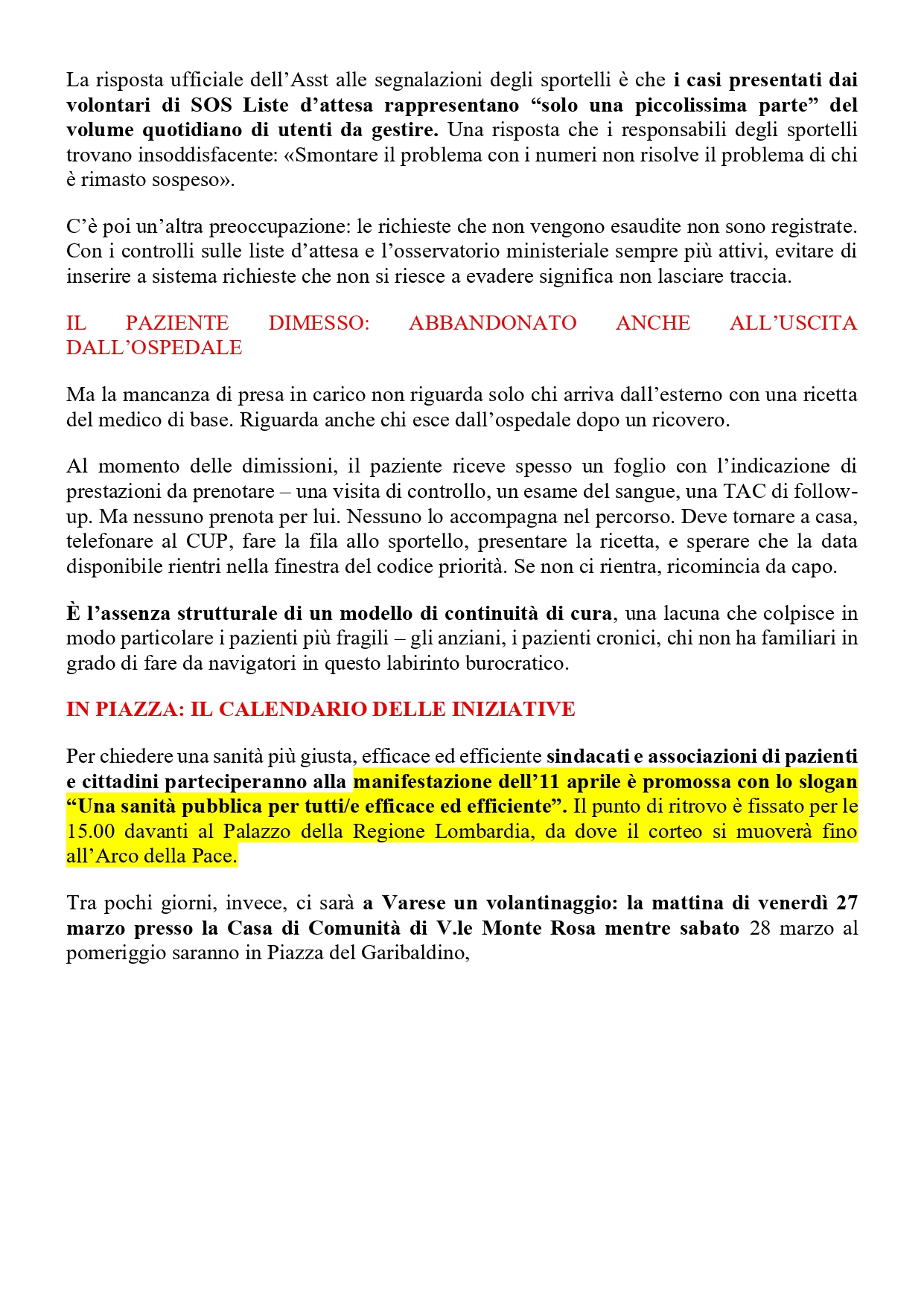 Liste d’attesa: critiche dagli sportelli SOS. l’11/4 manifestazione a Milano. E’ importante esserci!
